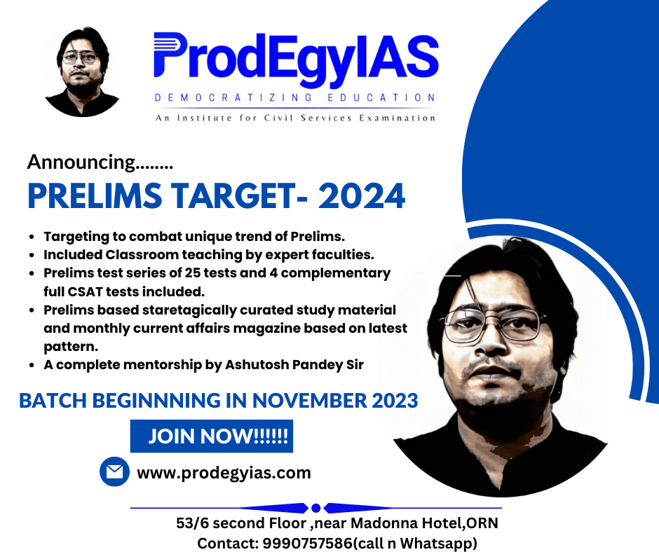 Has prelims become the biggest hurdle in your path of becoming IAS? Is the New trend complicating your mind? Are you not finding the right strategy to prepare for it? Then look no further. We are coming up a state-of-the-art modus operandi of success in UPSC 2024! Launching Prelims Target -2024, a Staretegic Programme targeting Prelims 2024. Course Brief 1.Regular classes for prelims will also be held from 1st November onwards for polity,economy, history, geography, environment, ecology ,science & technology. These classes will be followed by regular tests based on UPSC module. 2.Focus on concepts and identifying patterns of Prelims : PYQ analysis, MCQ practice (4000+) and discussion, current affairs updates 3.Important topics of GS Paper 1,2, and 3: Discussion and quality enrichment. (e.g., Polity, Governance, International relations etc.) 4.Special sessions will be conducted for improving English vocabulary and English comprehension to crack the CSAT. These sessions will also boost your answer writing ability. 5. A monthly current affairs magazine BRIDGE will be provided covering important topics relating to both pre and mains. The batch is starting November Onwards…… Join NOW!!!!!!! First free full prelims test to be held on 28 October 2023 Check your preparations and get ready for selection in prelims 2024 We are there with you always!!!
